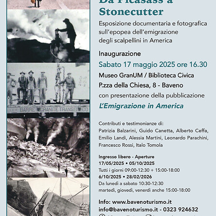 La mostra propone un percorso storico-documentario che ripercorre l’avventura degli scalpellini bavenesi emigrati oltreoceano. Il racconto parte dai lunghi viaggi affrontati per raggiungere gli Stati Uniti e arriva all’integrazione nella realtà economica e sociale di Barre, in Vermont, città considerata la capitale americana del granito. Il percorso espositivo mette in luce anche alcune figure di spicco che, con il loro impegno, hanno segnato esperienze pionieristiche nel campo delle lotte sindacali e della difesa dei diritti dei lavoratori.